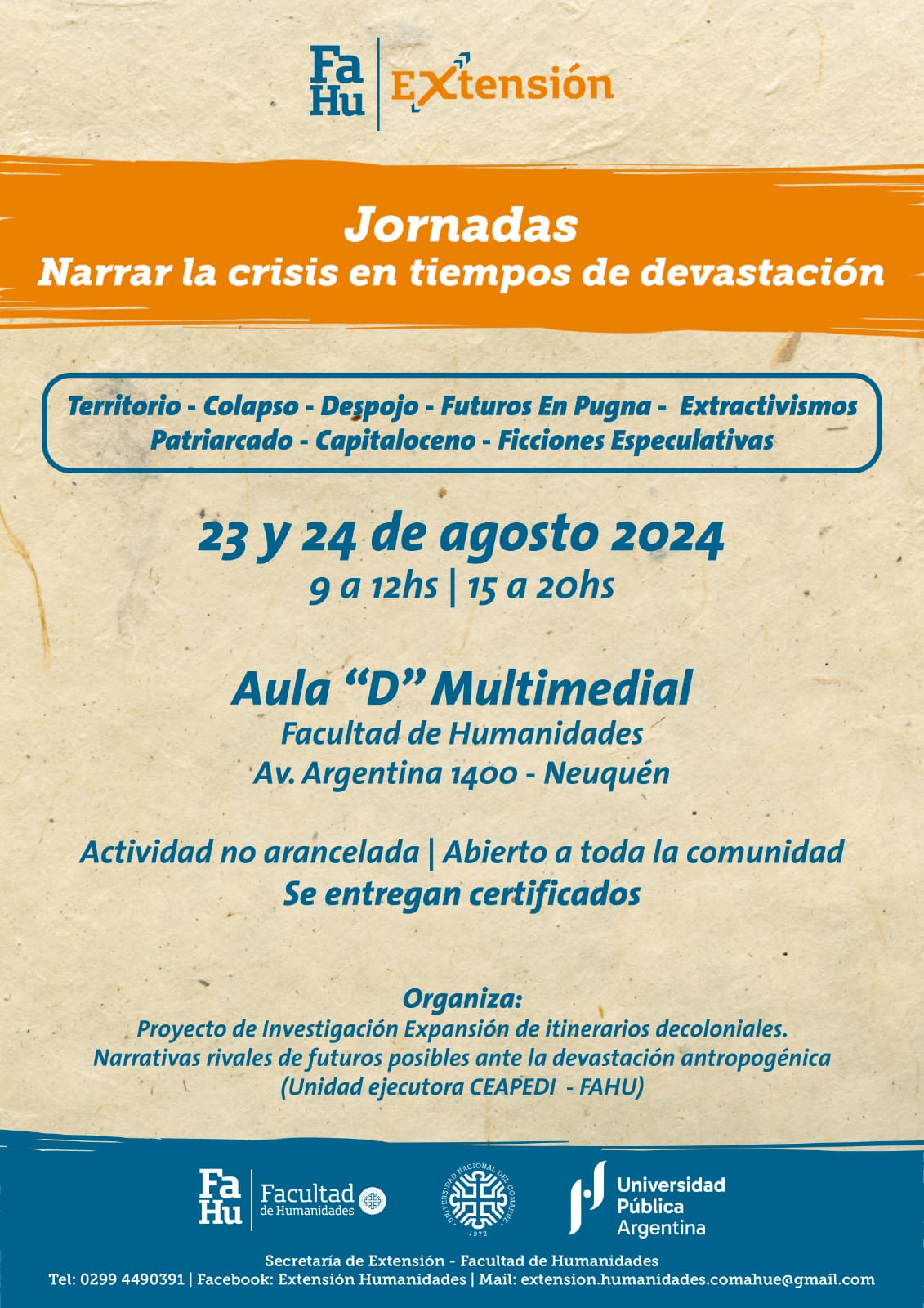 Proyecto de Investigación 04/H196 "Expansión de itinerarios decoloniales..." (Unidad Ejecutora CEAPEDI - FAHU) junto a la Secretaría de Extensión de la Facultad de Humanidades, UNCo